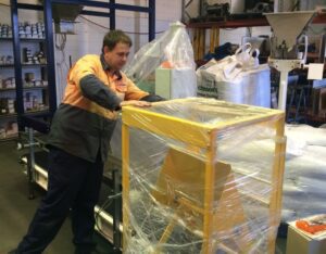 Here, one of in-house tradesmen, Brett is packing up a conveyor and sewing pedestal, ready to be delivered to a customer. We take a lot of care to ensure that your bagging equipment arrives in perfect condition!